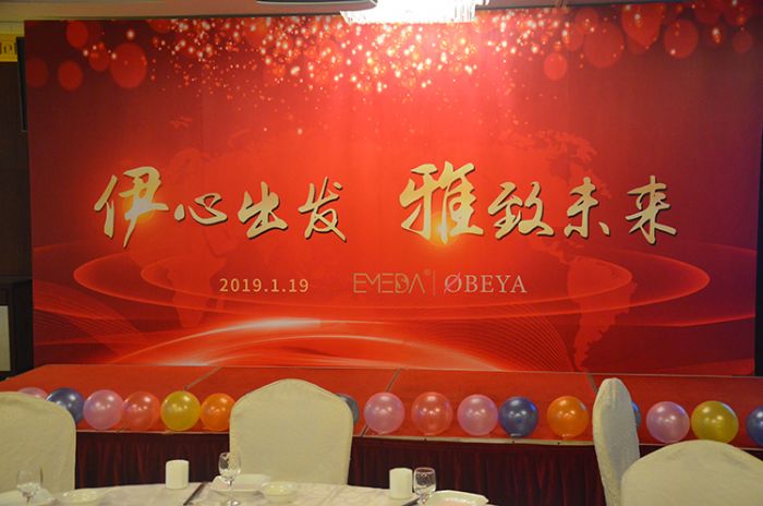 公司以“伊心出发,雅致未来”为主题,预示着在2019年,伊美达人将秉承“团结 创新 拼搏 共赢”的企业文化,一心出发,共创未来。